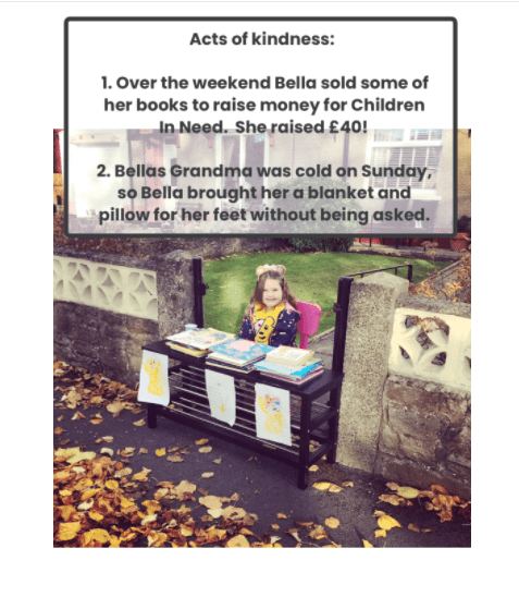 What a superstar she is! We are very proud and it is great to see our children living our school vision of Kindness, Fellowship and Confidence. Here Bella is demonstrating all three!