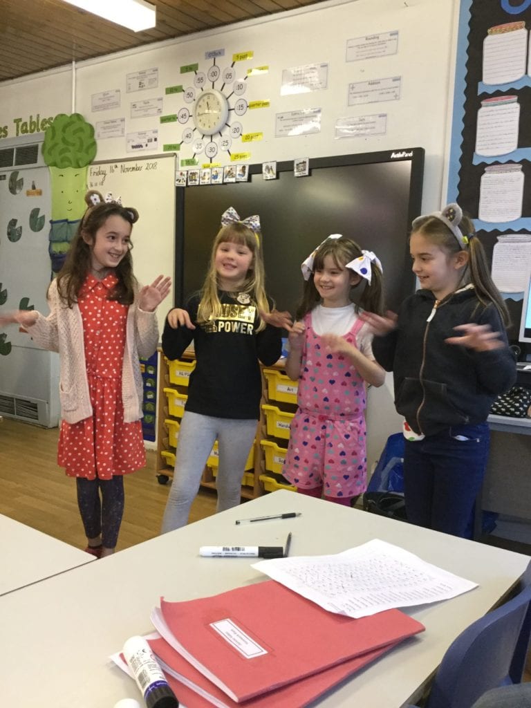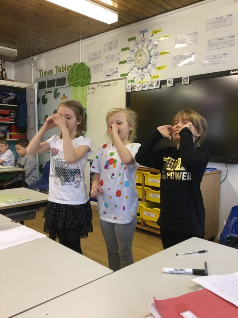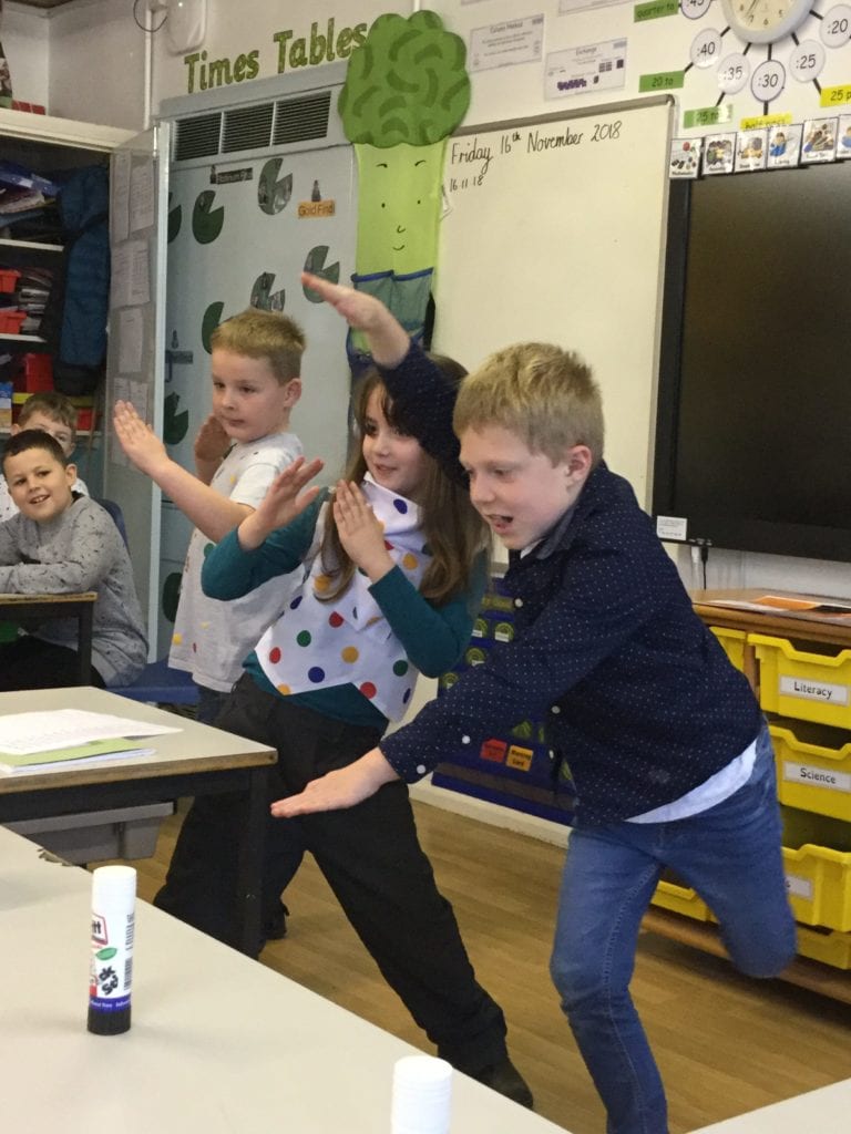 We went into hall to carry out a Science experiment. We wanted to know how exercise effects our body. We had a great time carrying out exercises; including the floss.