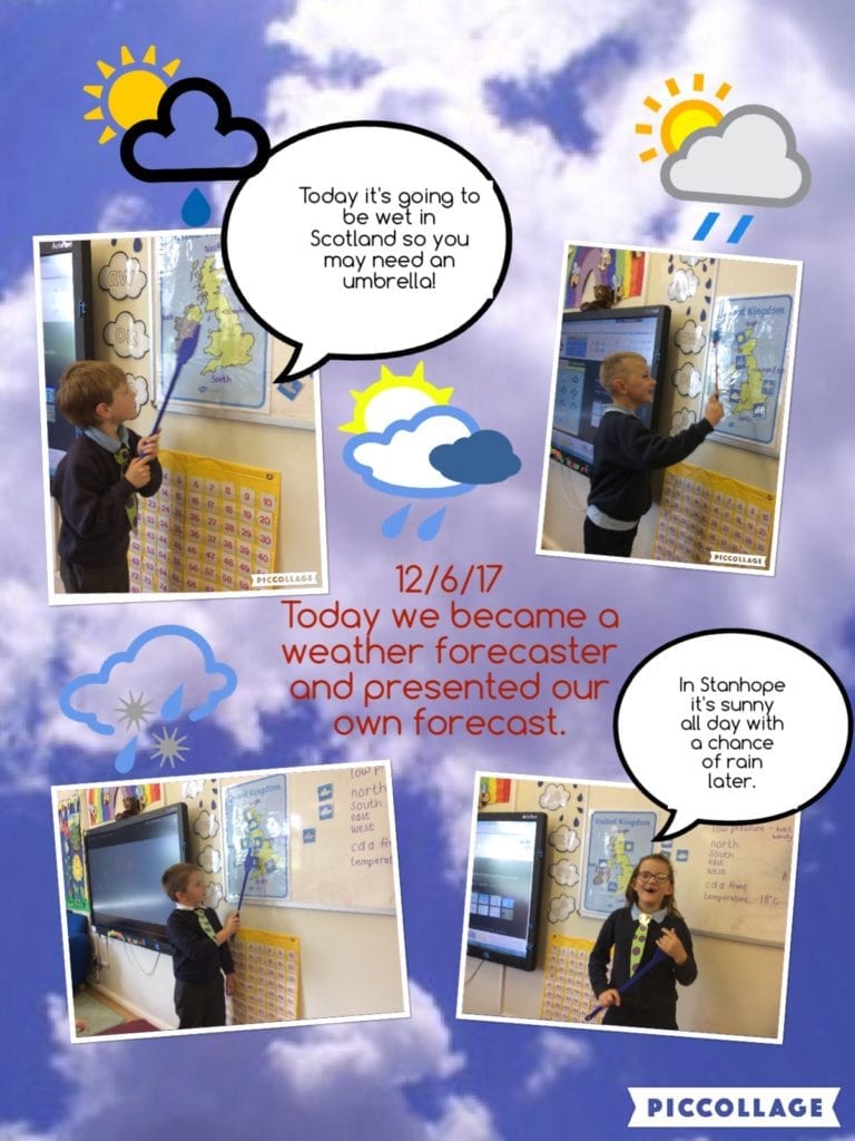 Class 1 have been learning about the weather and each had a turn at presenting their own weather forecast. Thankfully it was a sunny day in Stanhope, and I think they may have brought the good weather to us!