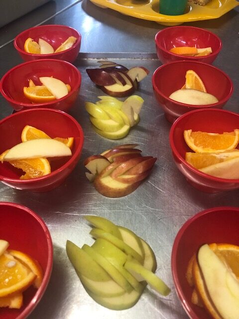 Check out the work of our talented kitchen staff! They carefully carved these beautiful apple swans for our children to enjoy at dinnertime. Thank you Lynn and Zoe – they look amazing!
