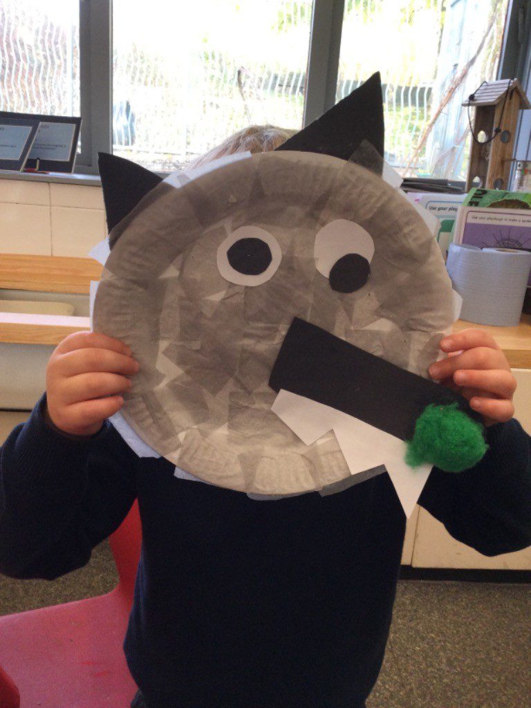 Big Bad Wolf Masks – We have continued our Little Red Riding Hood focus in our creative area in the Opal Learning Zone. The children have had the opportunity to produce their own Big Bad Wolf mask. This has been a fantastic opportunity to develop fine motor skills as the children ripped up tissue paper and used glue spreaders effectively. The masks are currently being published on the windows, so if you are walking past have a sneak peek!