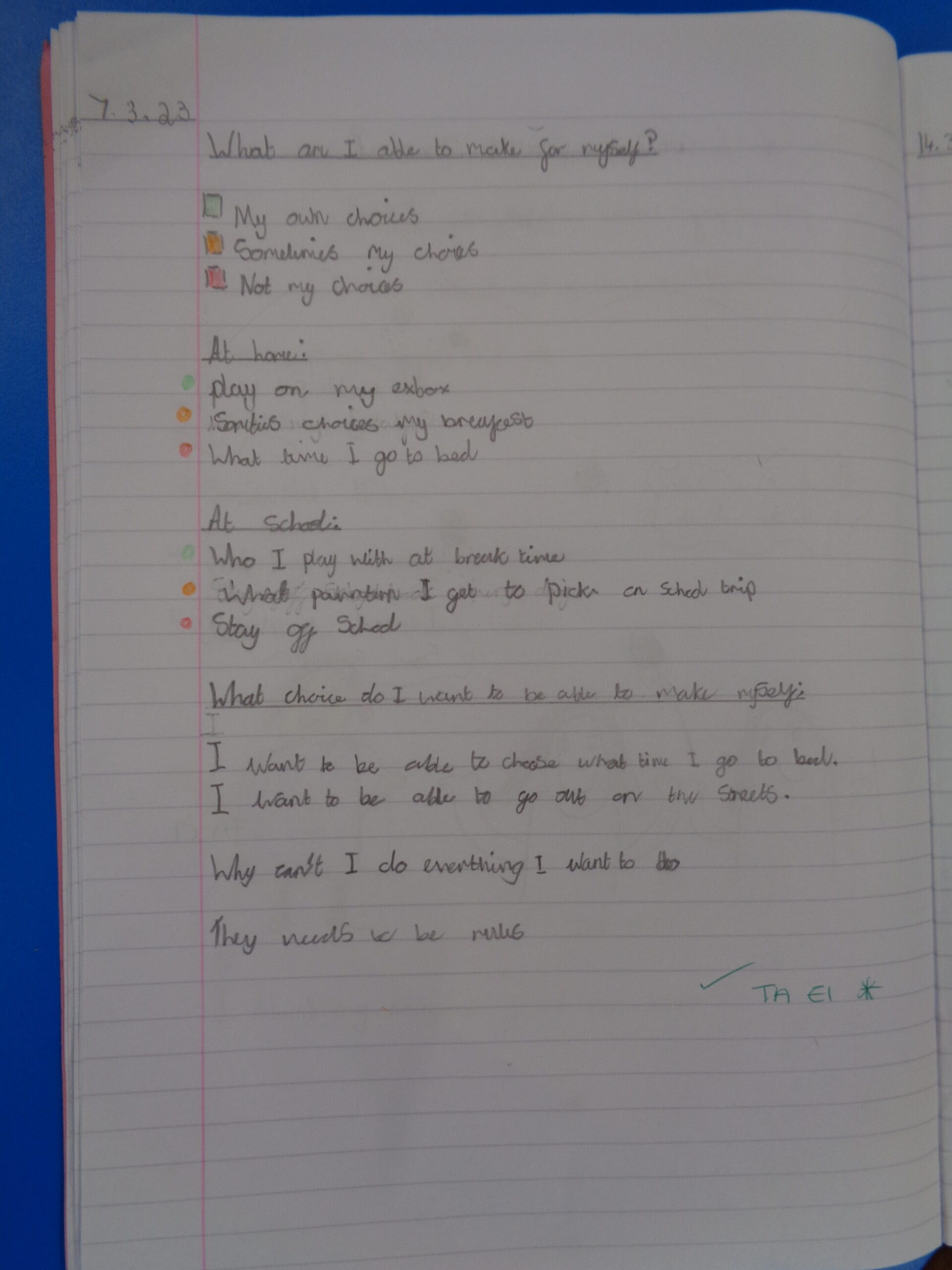 Health & Wellbeing – Our focus for this half term in character development has been physical health and mental wellbeing. We have looked at how we can manage uncomfortable feelings as well as what can be the consequences of making bad choices. The children have enjoyed putting their own thoughts and ideas into their work.