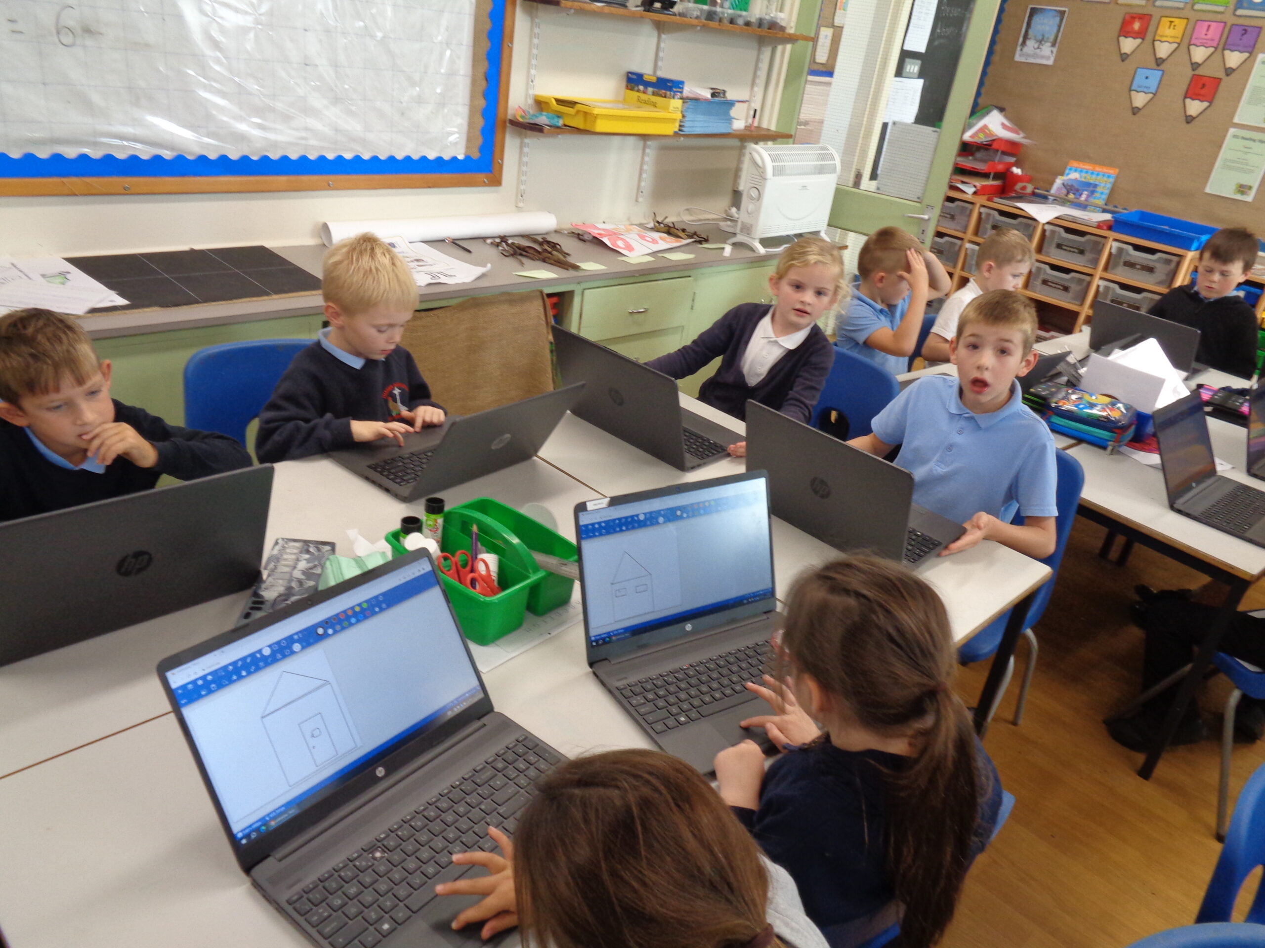 Digital Art – In Computing we used iPads or laptops to create a range of digital art. Children learned the benefits of having tools to draw shapes and straight lines, use colour fill tools and how to undo and redo to make sure our design is as good as it can be.