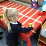 Bee Bot Bonanza Provision – This week the children have had the chance to experiment with Bee Bots. The children were challenged to get the Bee Bot from one side of the table to the other avoiding any hurdles. The children had great fun attempting to direct the Bee Bot and understanding how to create algorithms for a computer to follow.