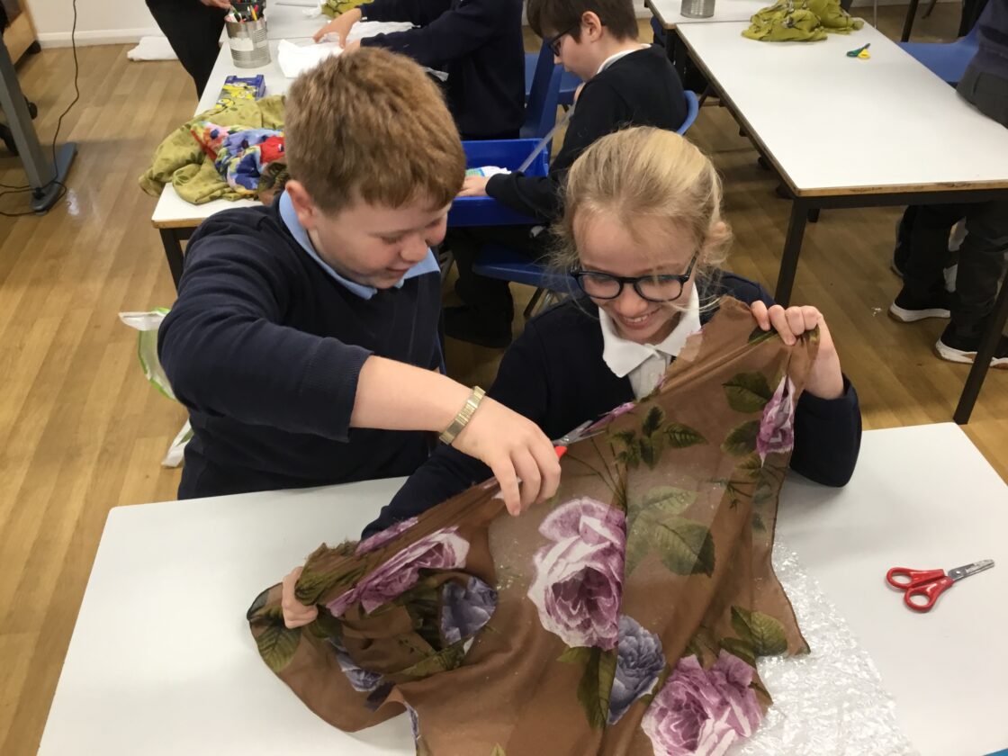 Making Parachutes – The Emerald Learning Zone have been designing and making parachutes this half term.  This lesson they worked with partners to test out different shapes and materials.  Some worked better than others and we were able to use this information to support our final parachute designs.