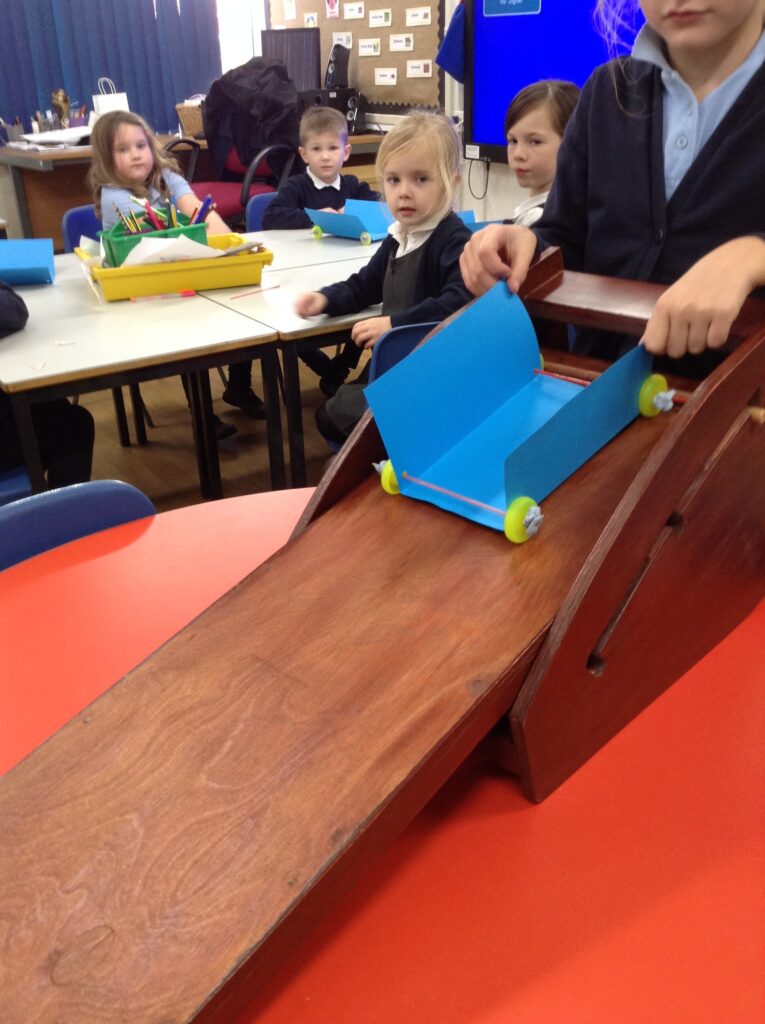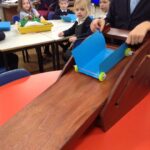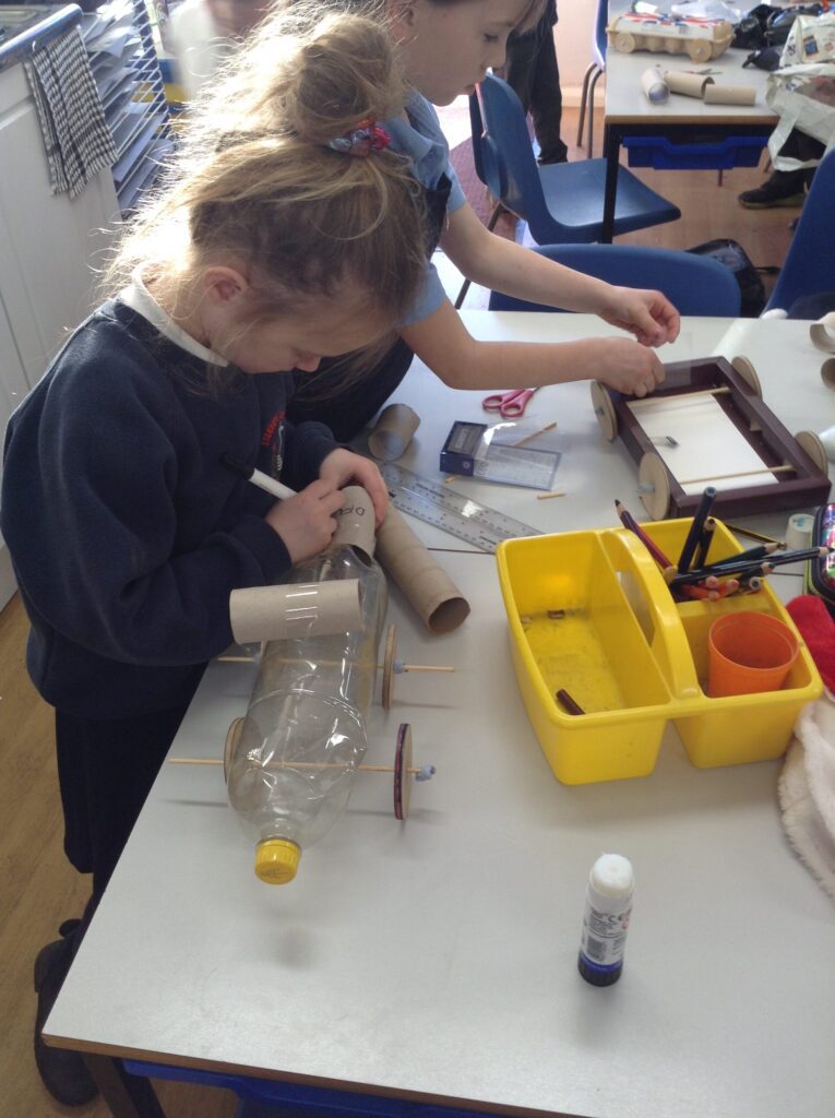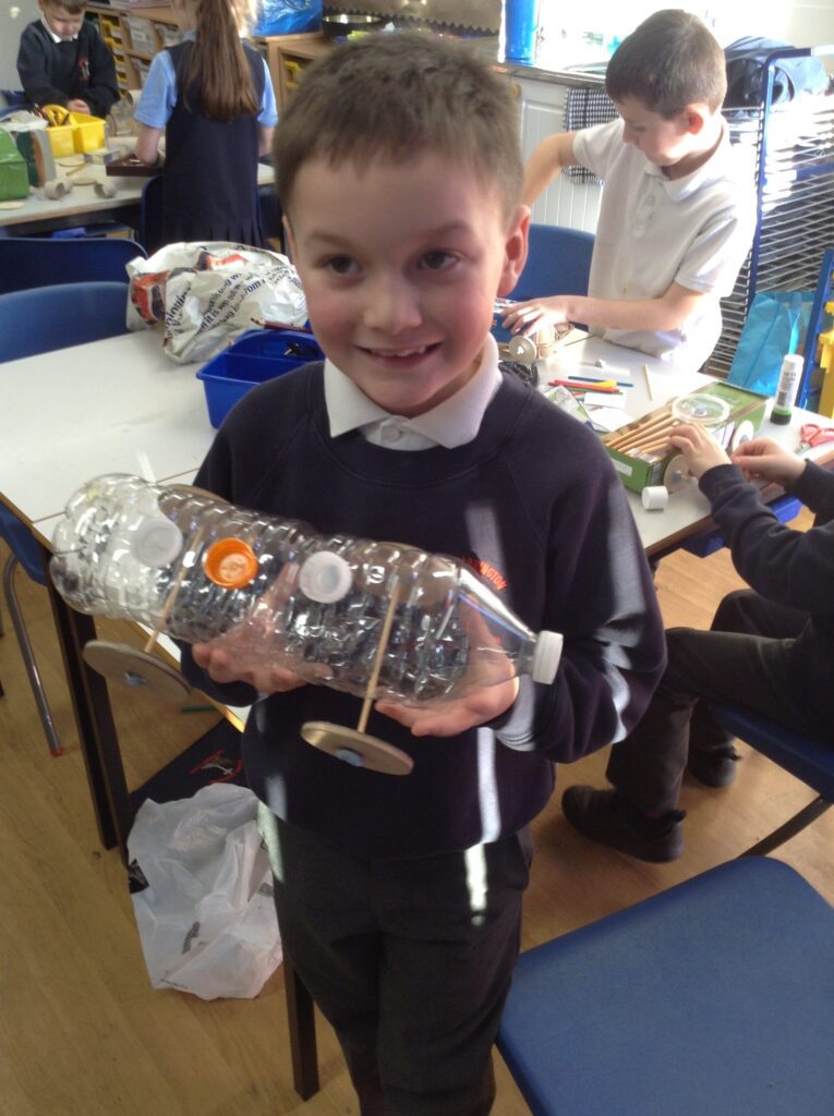 Vehicles – The children have been exploring moving vehicles. After investigating a range of examples, the children set off exploring and testing out their own wheels and axels. Next, the children designed their own vehicles and sourced the required junk materials they would need. The children spent time building and testing their vehicles and had a fantastic time seeing their finished creations zooming across the hall floor!