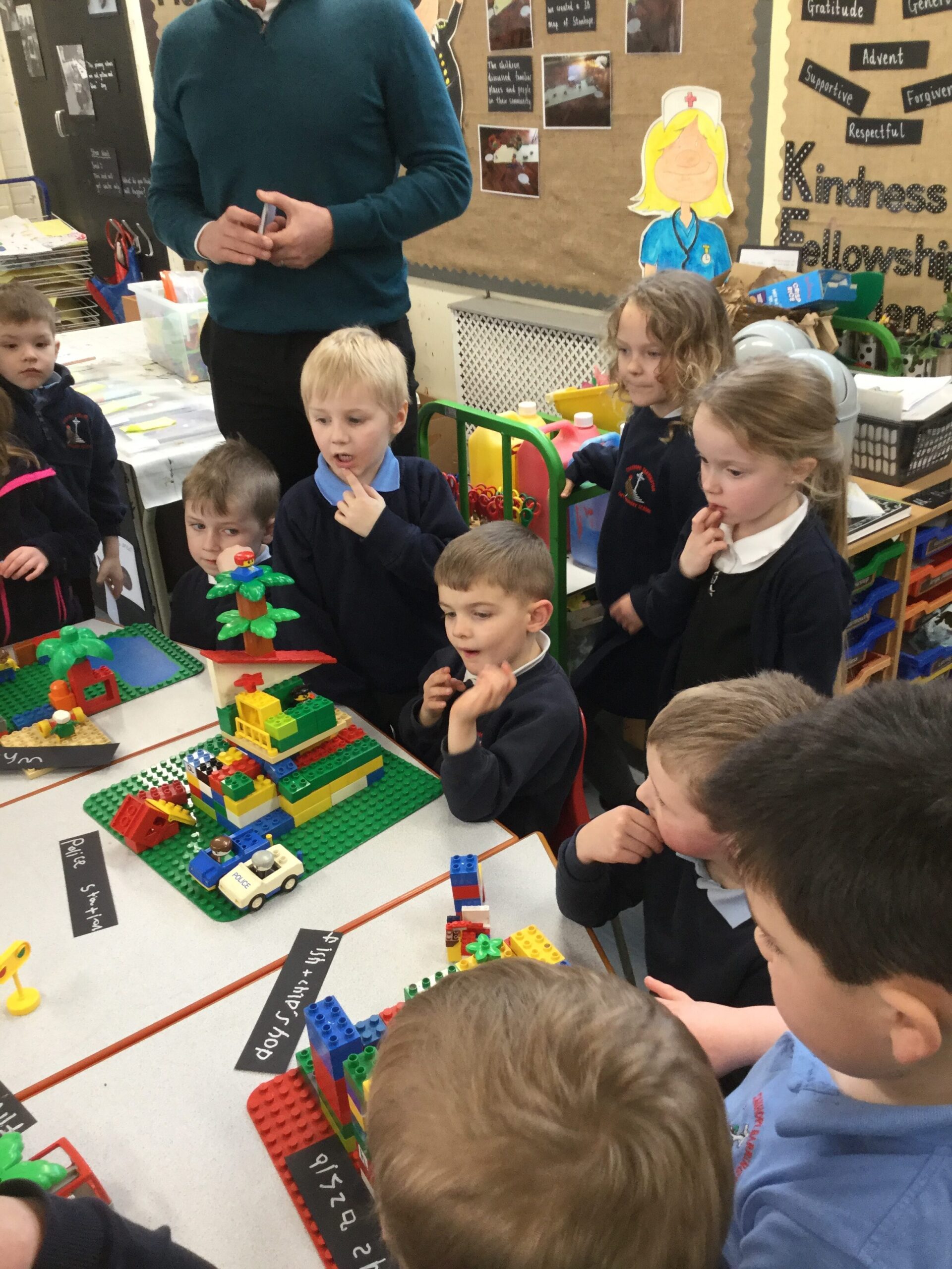 Community Landmarks – Over the last few weeks we have been studying our local community and identifying important landmarks. After taking an excursion into the community the children were asked to work collectively to create Stanhope using Lego. The children worked in small groups to make important buildings and then placed them in their correct place on the map.