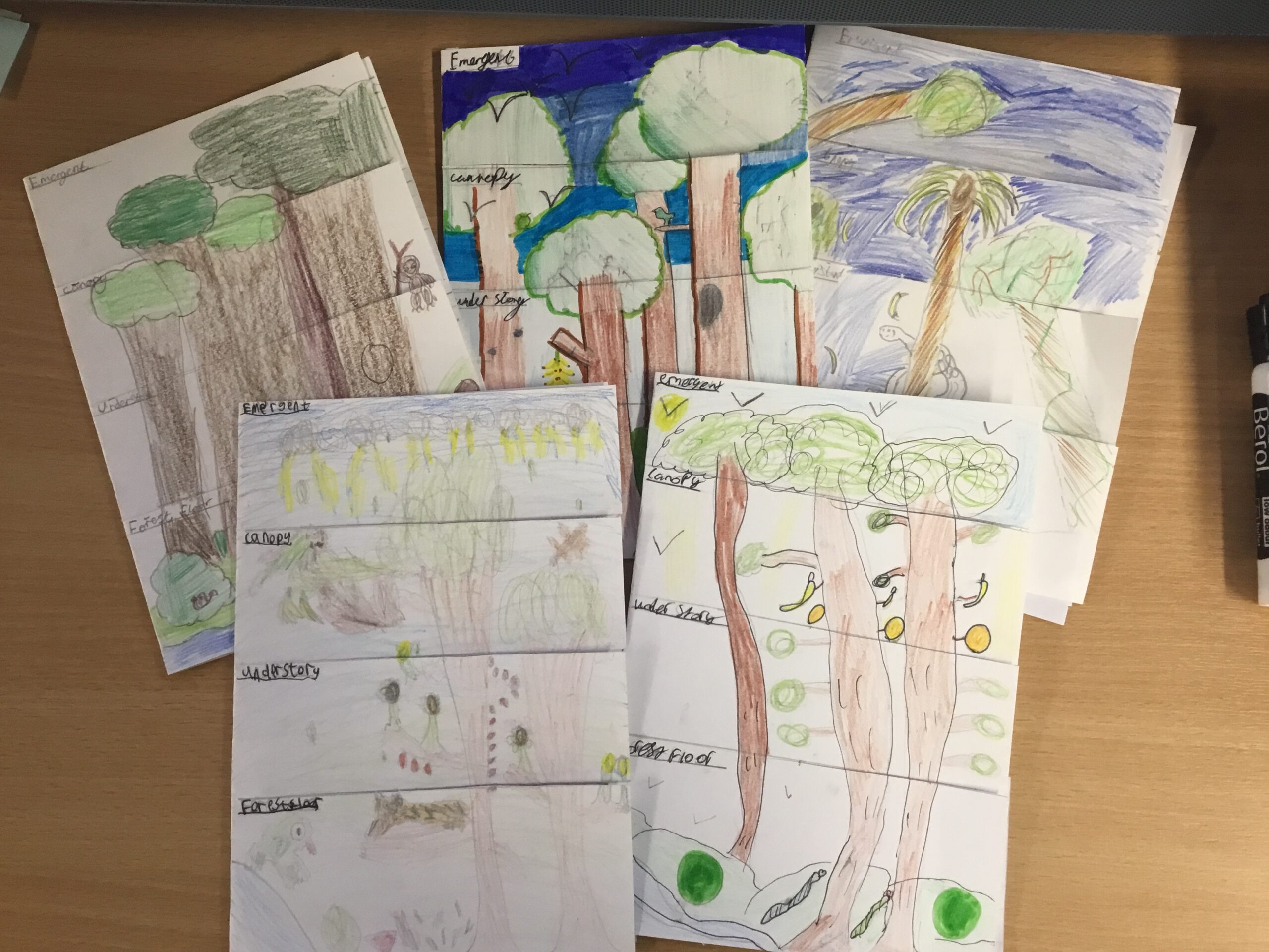Rainforests – We have learned a great deal about Rainforest during our topic. We have used maps to identify where in the world rainforests are and how features such as the equator affect what a rainforest is like. We created booklets to show the different layers of the rainforest and carried out our own research to understand more about the differently layers.