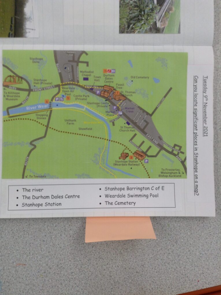 Exploring Stanhope – We have been exploring what it like in our local area, Stanhope. We have used maps, keys and Atlases to help us look closely at where Stanhope is in the UK, the North East and then looked closely at Stanhope itself. We have thought carefully about the wonderful things we have in Stanhope and even created our own leaflets all about Stanhope and its hidden gems!