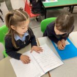 Gross and fine motor skills are developed and mastered in the lower end of school. A rigorous handwriting scheme allows the children to develop a clear understanding of cursive letters that develop into a clear and well-formed join. Children are encouraged from an early age to take pride in their work and this is carried on throughout their school career.