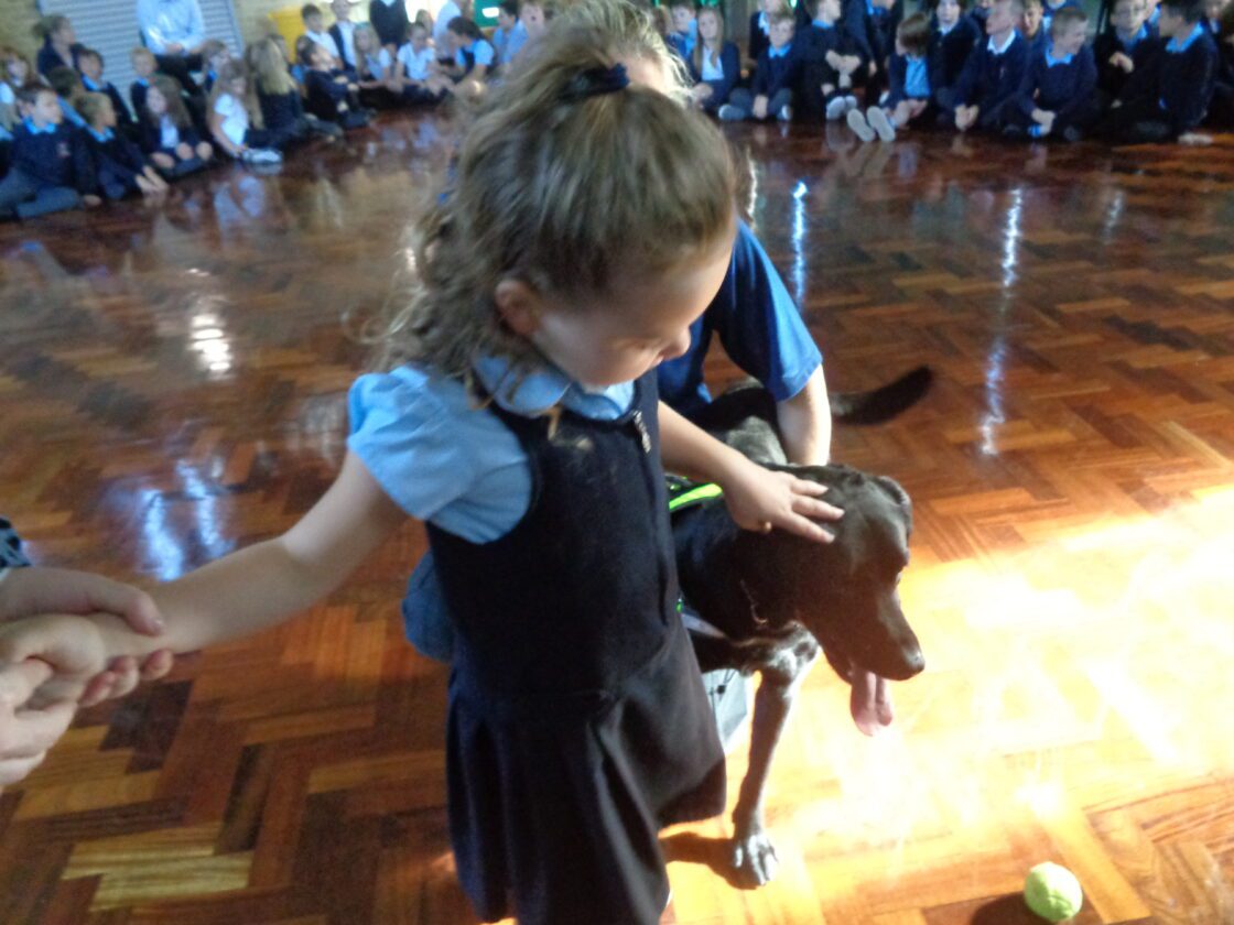 Everyone was extremely excited to meet the two Labradors! The children sat so quietly and calmly waiting for the arrival of the dogs. Jet (the black lab) was really excited to come into the hall and meet everyone! Claire explained what dogs are used for by the police and then every child had the opportunity to stroke the dogs as they left the hall.