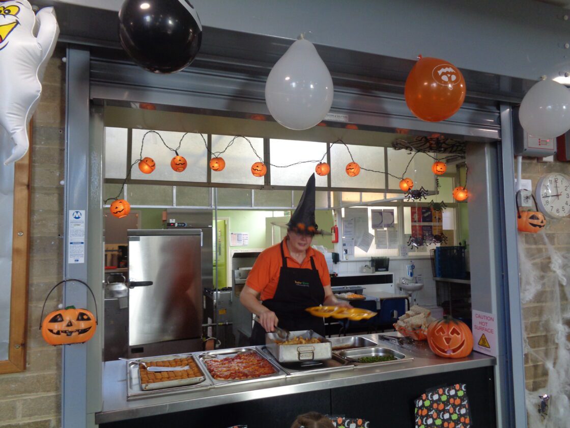 Our catering team from Taylor Shaw outdid themselves in decorating the hall for lunchtime, dressing up and making a spooky Halloween lunch. Even children who normally have a packed lunch participated and enjoyed their ‘Frightening Fish Fingers’!