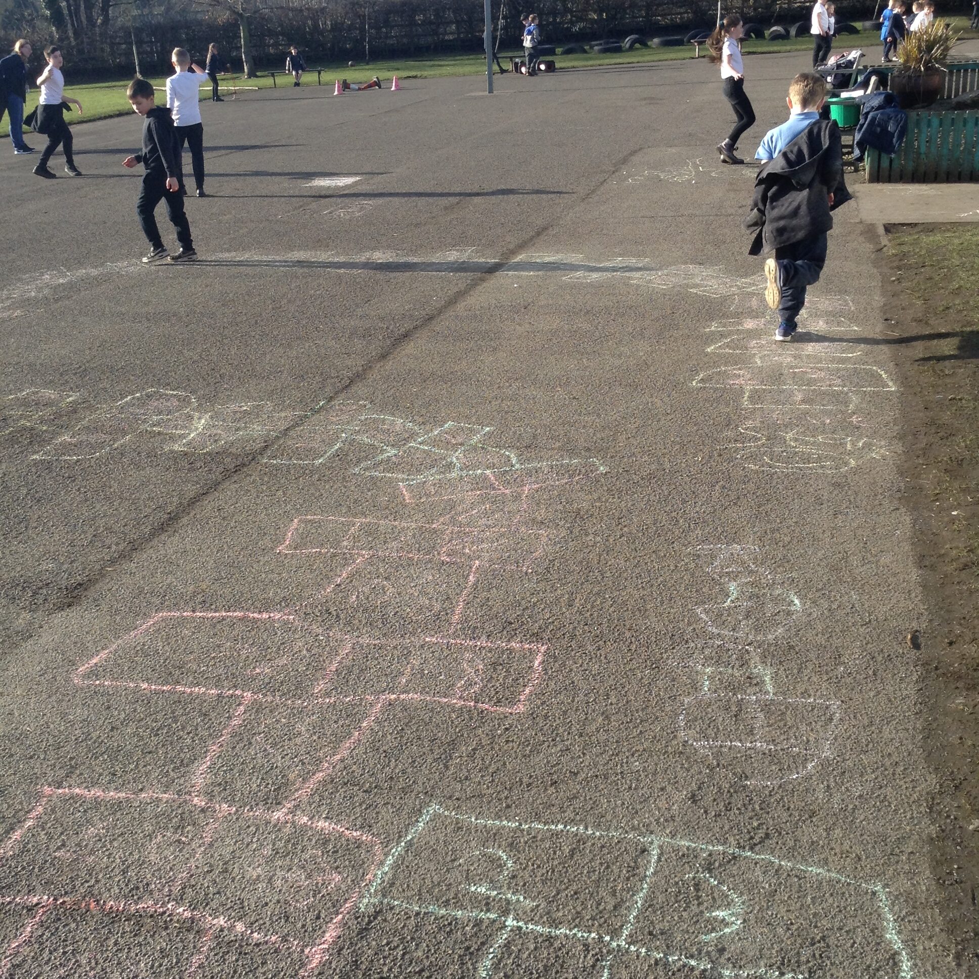 Our very youngest children in Amethyst used chalk to create an enormous flag on their playground.