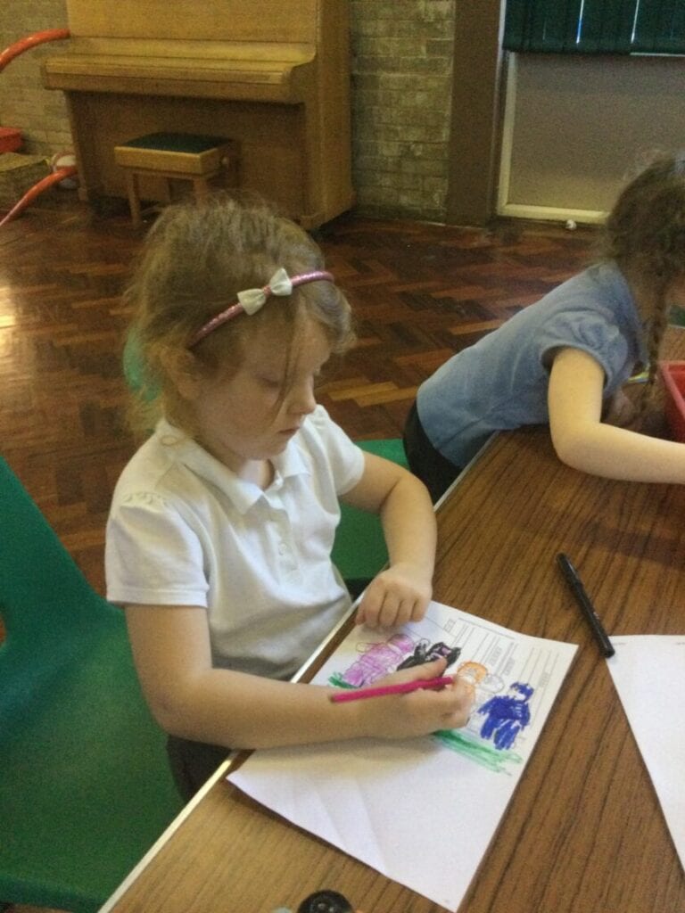 Mindfulness Colouring – Research has shown that colouring in detailed pictures helps the brain to rest as it is focussing so much on the small spaces to colour in that our brains get a rest from the stresses and worries of everyday life. In addition, it is a great activity to develop fine motor skills in younger children or those with Dyspraxia. Our children (across all ages ranges) love Mindfulness colouring and they all produced some beautiful pictures.