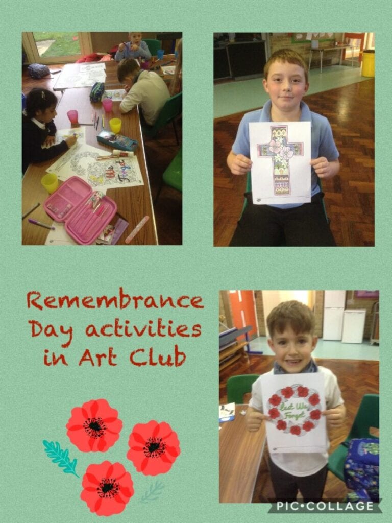 After school Art Club is held on a Monday night and is facilitated by Mrs People and Miss Ingwersen throughout the first half of the Autumn Term. “Art club is this great new club where we do really fun art. We are doing poppies for the people who fought in the war. We are going to paint them and this week we cut them to look like flowers”. – Rosie (Year 4)