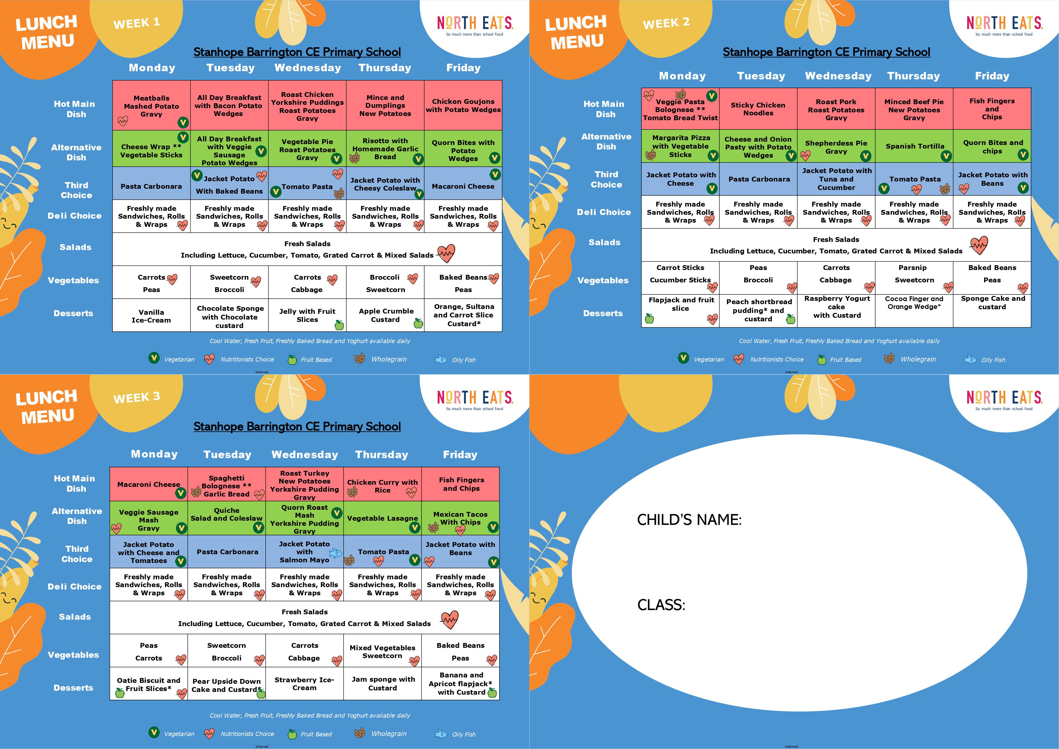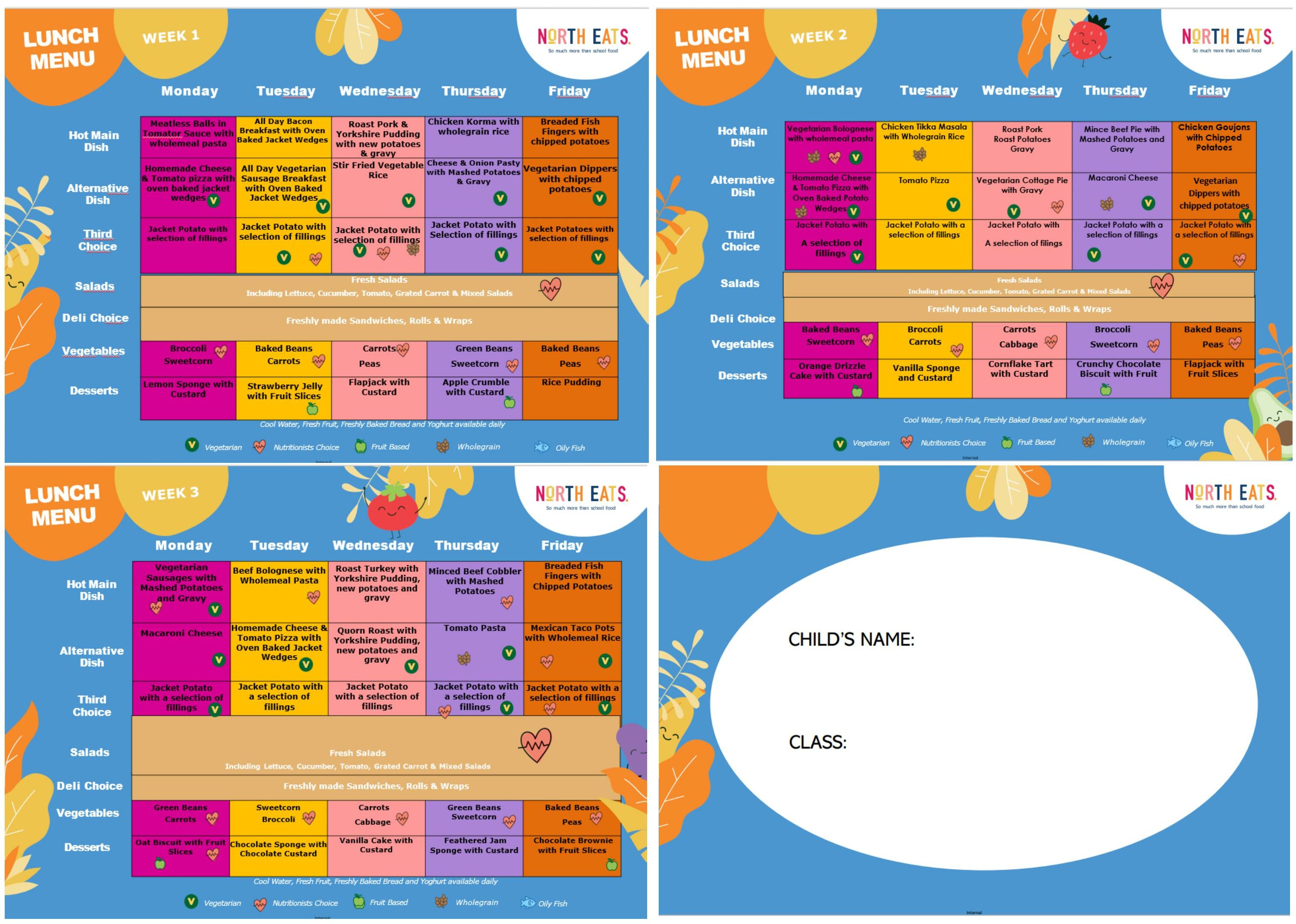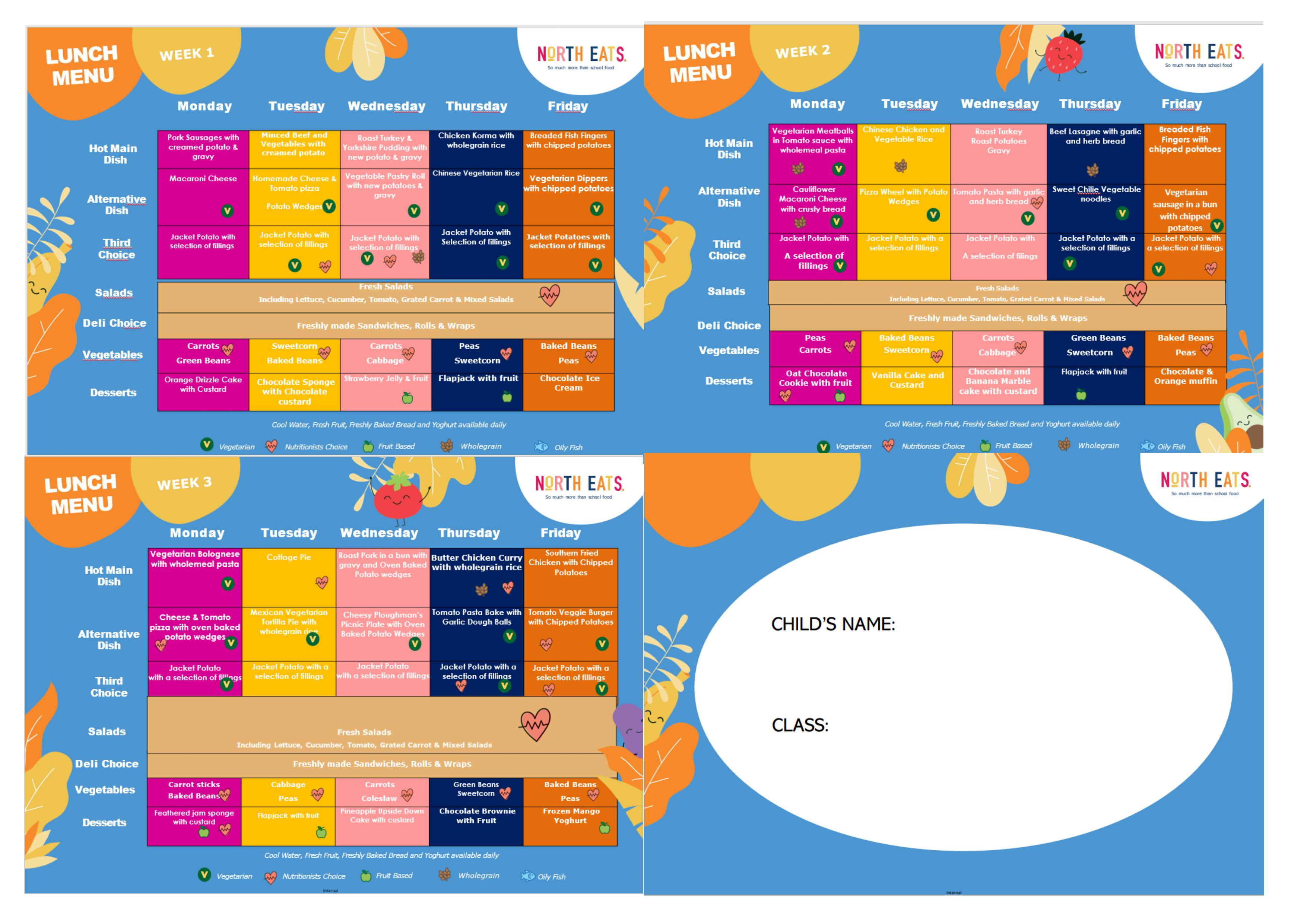 Please sit down with your child to discuss and agree their meal options. It is important your child selects the food of their choice and not the parent choosing for them. This choice relates to the main course options only. Your child can select their preferred pudding on the day. Choosing dinners together will ensure that your child enjoys their school dinner and it helps to reduce food wastage.