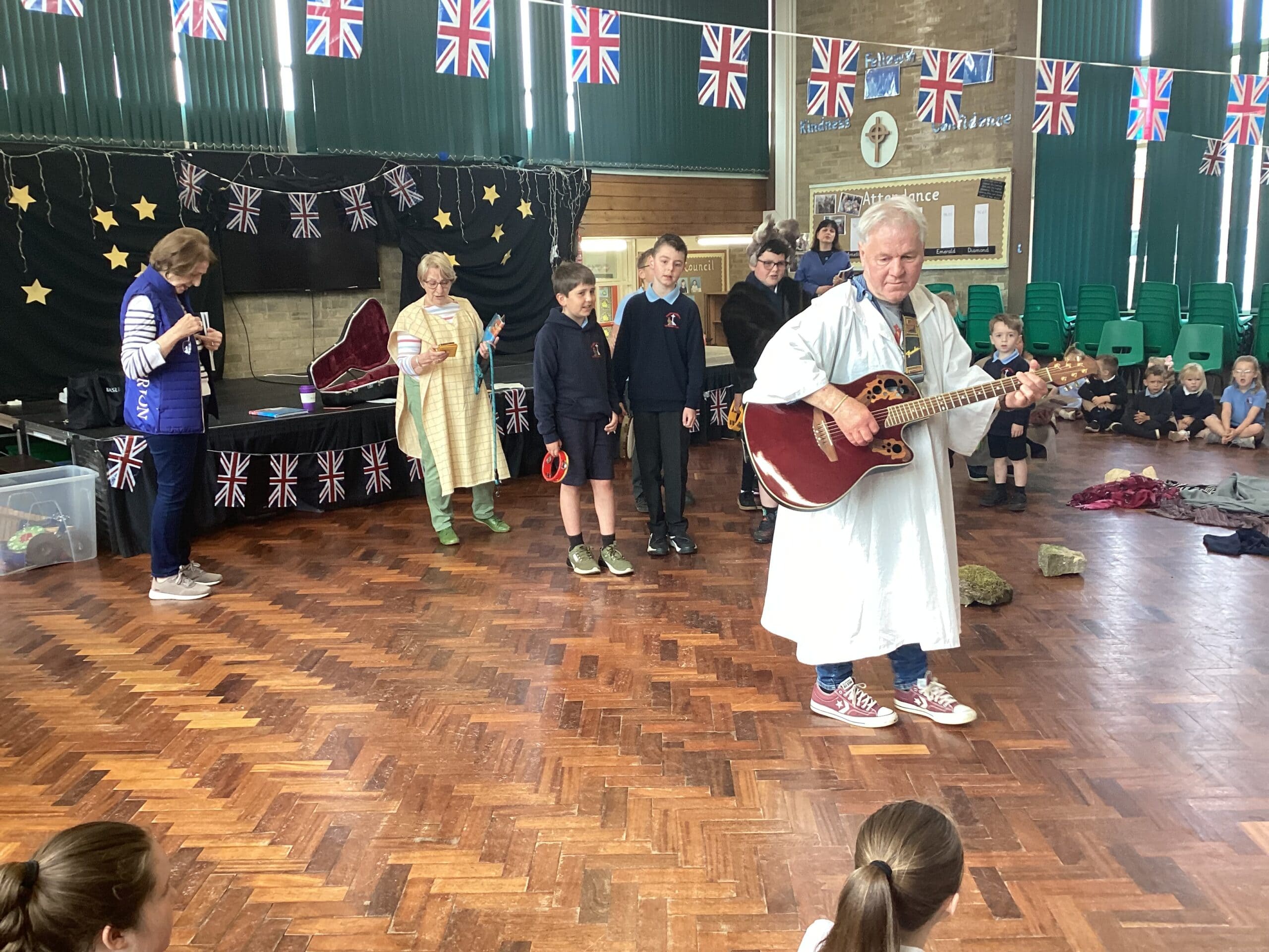| 06.05.25 How can we show we are taking responsibility? | BANK HOLIDAY MONDAY On Tuesday we talked about responsibility. We discussed taking responsibility for our actions but also stepping up and taking responsibility when something needed to be done. We talked about the difference and how challenging it was to ‘step up’ when no-one else is doing so. We shared examples of when this is done in school. On Wednesday the Open the Bible team delivered a fantastic performance called The Great Parade based on Matthew 21. A number of children joined in and helped with the performance and the audience participated too. ![]() On Thursday we had a whole school assembly to celebrate the 80th Anniversary of VE day. We watched a video of a veteran talking about his experience of wartime and how he celebrated on VE Day. We celebrated with activities in each Learning Zone and a VE picnic lunch for everyone. On Friday we held our celebration assembly where we awarded certificates and awards. We celebrated birthdays and out of school achievements too. | The children have a good understanding of taking responsibility. The children initially struggled to understand how stepping up is also taking responsibility they think it is just about owning up. The children thoroughly engaged with the performance this week. |