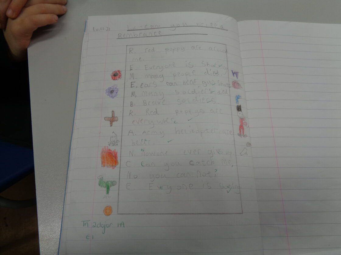 In Ruby, the children created poppy designs and then wrote their own poems. These amazing creations were then displayed in the Learning Zone window for others to see. A two-minute silence was held in their Learning Zone at 11am.