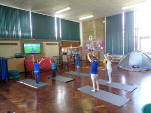 The children started the afternoon session by doing yoga and fitness training. The children had a great time stretching, holding balance positions and perfecting their yoga moves to one of our favourite stories, ‘Going on a bear hunt.’ Next, the children tried some Joe Wicks Hitt training, following along with the high-energy moves, laughing all the way. It is a great way for the children to improve their fitness in small bursts.